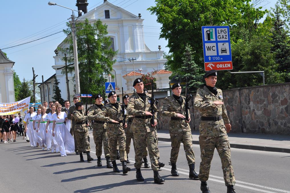 Imprezę rozpoczęło spotkanie z ks. Biskupem Tadeuszem Pikusem w kościele pw. Trójcy Przenajświętszej. Po mszy świętej na placu przed świątynią odbył się krótki pokaz artystyczny. Nasza uczennica Dominika Bogucka zaśpiewała poruszający utwór „Nie żałuję”, a młodzież z klas wojskowych zaprezentowała pokaz musztry paradnej. Kolejnym punktem był przemarsz ulicami miasta pod przewodnictwem naszych młodych artystów i uczniów klas wojskowych. Zebrani udali się na Stadion Miejski, na którym odbyła się dalsza część spotkania.