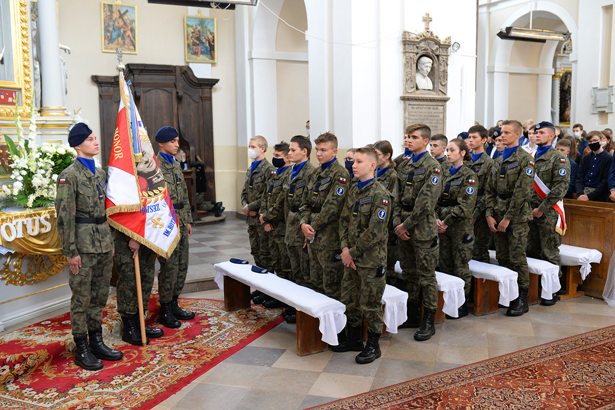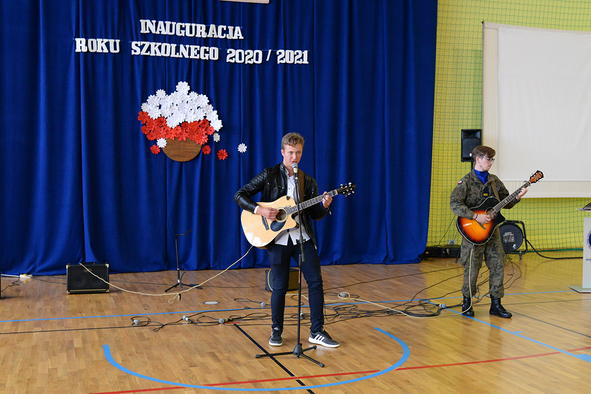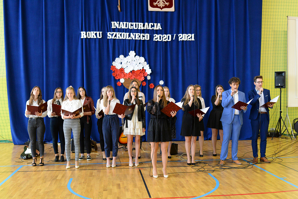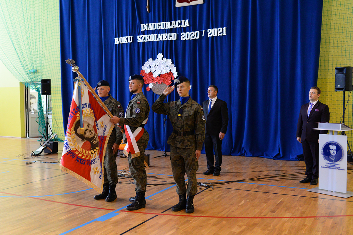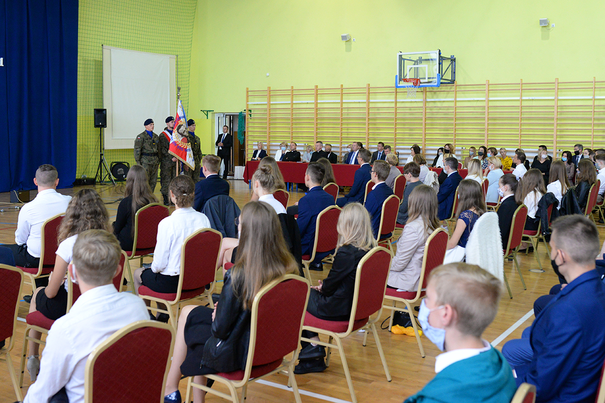 Spotkanie tradycyjnie rozpoczęło się przemarszem pocztu sztandarowego, młodzieży, nauczycieli i wychowawców naszej szkoły do kościoła pod wezwaniem Trójcy Przenajświętszej. Po nabożeństwie wszyscy zebrani udali się do budynku liceum. W hali sportowej odbył się apel, który rozpoczął Dyrektor ZSOiZ w Ciechanowcu Pan Łukasz Godlewski. Powitał on bardzo gorąco gości przybyłych na inaugurację roku szkolnego: Burmistrza Ciechanowca Pana Eugeniusza Święckiego, Sekretarz Gminy Ciechanowiec Panią Annę Czapkowską, Przewodniczącego Rady Gminy Miejskiej Pana Marka Karolewskiego, Przewodniczącą Rady Rodziców naszej szkoły Panią Agatę Koc, księży, nauczycieli, wychowawców i pracowników obsługi szkoły, a także młodzież szkolną wraz z rodzicami. Pan Dyrektor podkreślił, iż dołoży wszelkich starań, aby wszyscy uczniowie czuli się w naszej szkole dobrze i bezpiecznie. Zapewnił, że pracownicy naszej placówki zadbają, aby młodzież miała odpowiednie warunki do nauki, rozwoju i zdobycia wykształcenia. Podkreślił też, że w szczególnie trudnym czasie pandemii wszyscy członkowie społeczności szkolnej są odpowiedzialni za bezpieczeństwo i zdrowie nie tylko własne, ale również innych, dlatego tak ważne jest przestrzeganie zasad regulaminu pracy szkoły na czas pandemii wirusa COVID-19.