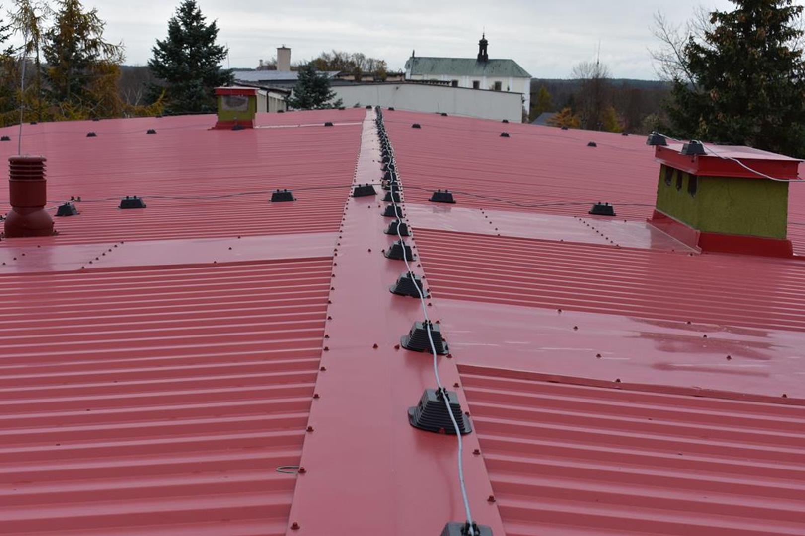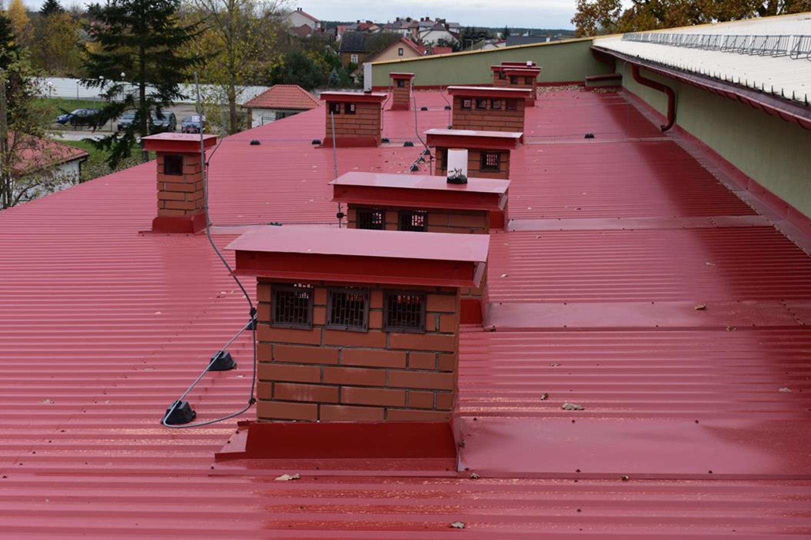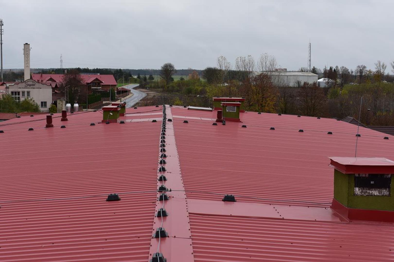 Zakończyły się prace modernizacyjne na dachu w Zespole Szkół Ogólnokształcących i Zawodowych w Ciechanowcu. Stara nawierzchnia wykonana z papy termozgrzewalnej która zaczęła przepuszczać wodę została przykryta nową blachą. Wykonano konstrukcje z łat i kontrłat w celu uzyskania spadku nawierzchni i położenia blachy. Dziękujemy dyrektorowi naszej szkoły Panu Łukaszowi Godlewskiemu za koordynowanie działań modernizacyjnych i zapewnienie środków finansowych oraz Staroście Wysokomazowieckiemu Panu Bogdanowi Zielińskiemu za wsparcie inicjatywy modernizacji dachu naszej szkoły.