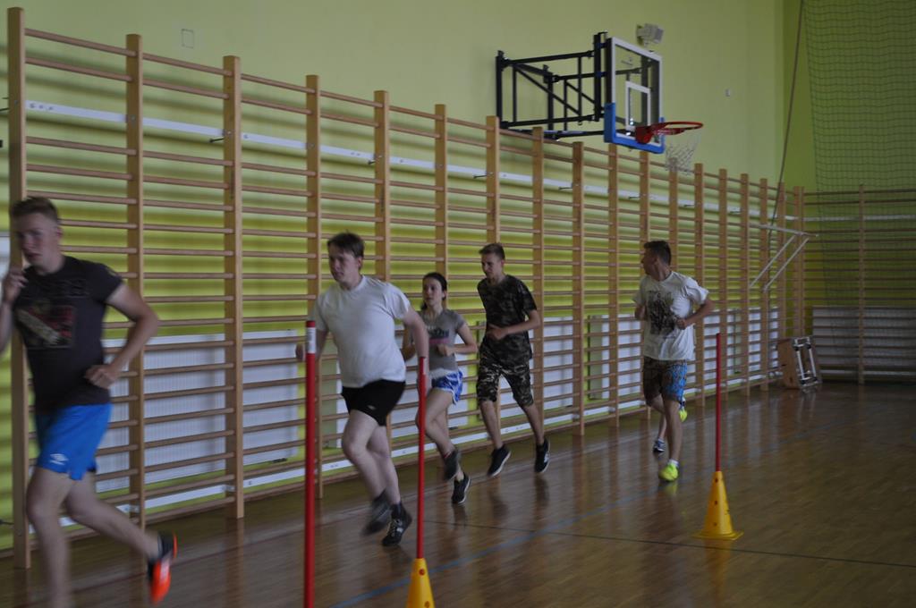 Kandydaci musieli wykazać się dobrym przygotowaniem zwinnościowym, szybkościowym i wytrzymałościowym pokonując tor przeszkód oraz bieg po kopercie. Nad sprawnym przebiegiem egzaminu czuwali pani Magda Kujawska z panem Arturem Szymoniakiem oraz uczniowie klasy wojskowo – sportowej.