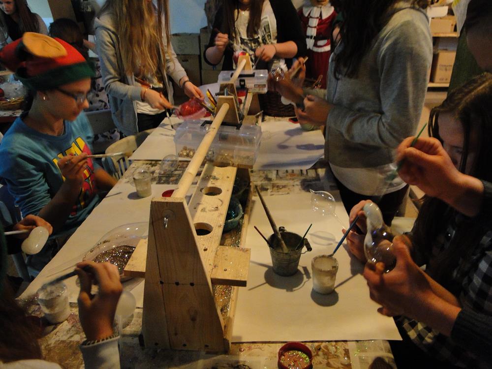Do Kętrzyna dojechaliśmy szybko i od razu rozpoczęliśmy zwiedzanie fabryki. Zobaczyliśmy, jak produkuje się bombki ze szkła. Każdy z nas pomalował też dwie wybrane przez siebie bombki.