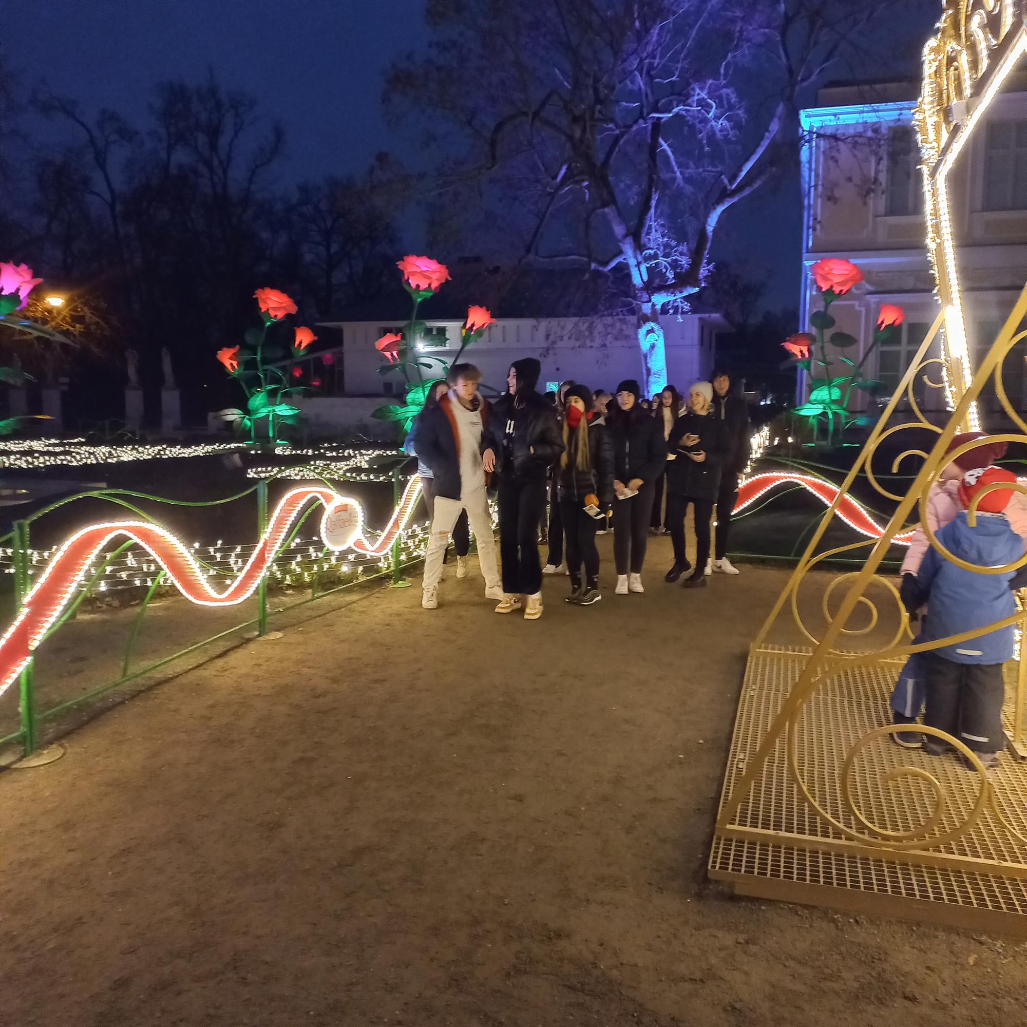 Po odpoczynku uczestnicy wybrali się do Pałacu w Wilanowie. Tam mogli podziwiać niesamowite wnętrza rezydencji, w której urzędował król Jan III Sobieski, wystawy kolekcjonerskie z arcydziełami malarstwa europejskiego i rzemiosła artystycznego oraz pamiątki dawnych mieszkańców pałacu. Ważnym elementem wizyty w Wilanowie był także Królewski Ogród Światła. To wystawa plenerowa, która rozświetla ogrody przy pałacu. Uczestnicy z zachwytem podziwiali świetlno-muzyczne pokazy, które zrobiły na nich ogromne wrażenie.