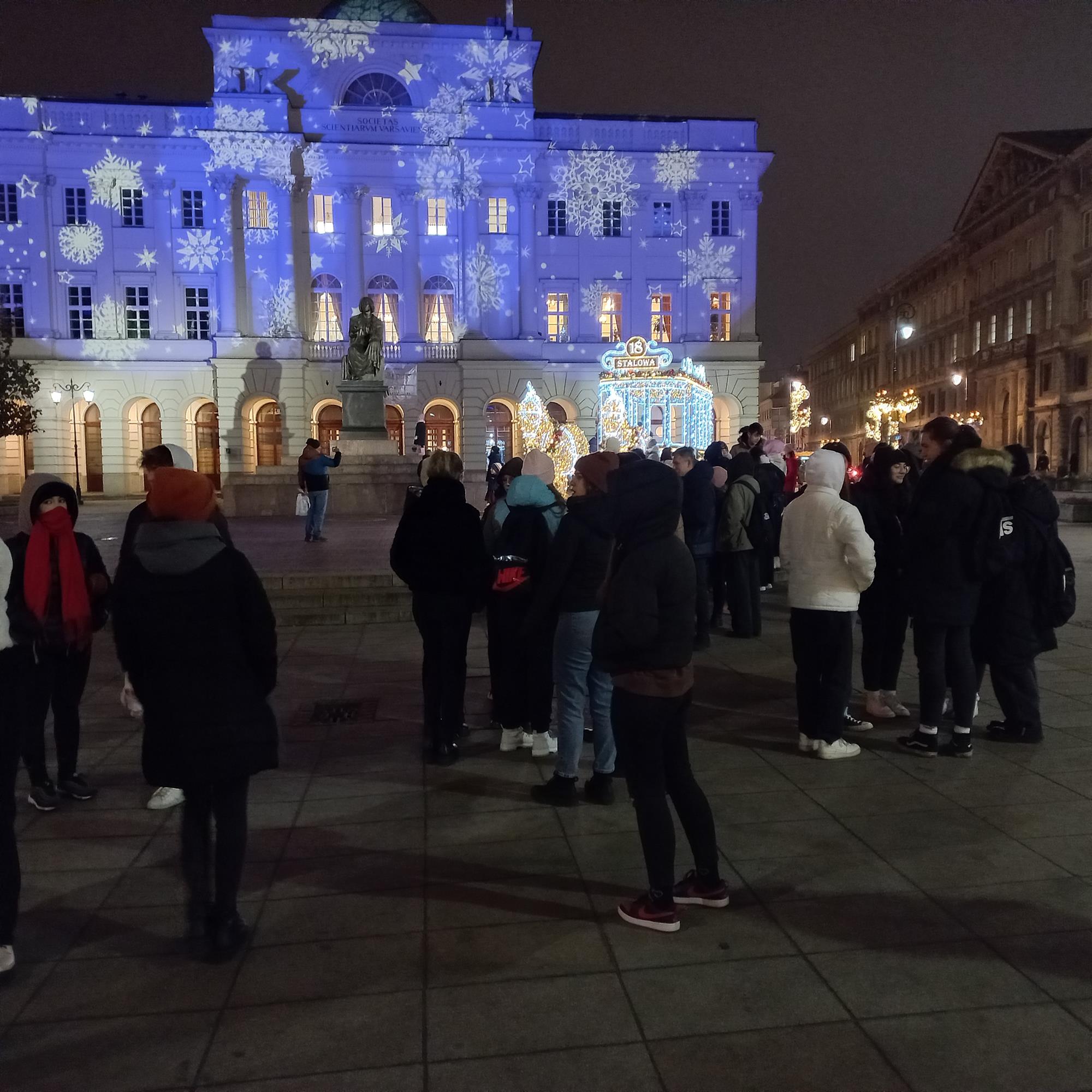 Kolejnym punktem wyjazdu był spacer po Krakowskim Przedmieściu. Uczniowie wraz z nauczycielami zachwycali się świąteczną iluminacją, która sprawiła, że każdemu w pełni udzielił się świąteczny nastrój.