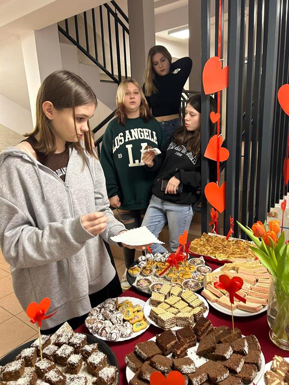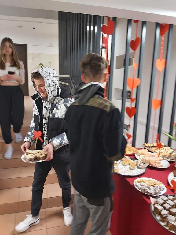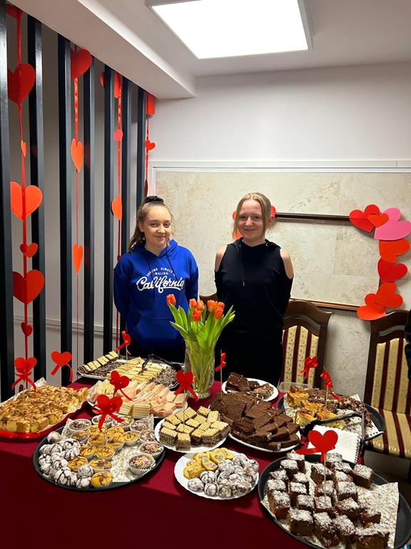 Po kolacji odbył się Kiermasz Słodkości Walentynkowych. Mieszkańcy Internatu wspólnie z Wychowawcami kupowali i delektowali się pysznymi wypiekami. Słodkości na ten wieczór przygotowała młodzież wraz z Wychowawcami.