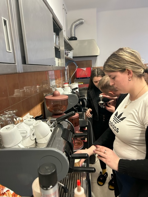 W lutym 2023r. nasi uczniowie Technik Żywienia i Usług Gastronomicznych wzięli udział w szkoleniu barista.  Kurs składa się z bloku teoretycznego i praktycznego. Zajęć odbywały się bezpłatnie w ramach projektu „Profesjonalizm w działaniu, skuteczność w przyszłość” Nr projektu: RPPD.03.03.01-20-0289/19, który jest współfinansowany ze środków Unii Europejskiej w ramach Europejskiego Funduszu Społecznego, RPOWP, Priorytet III Kompetencje i Kwalifikacje, Poddziałanie 3.3.1 Kształcenie zawodowe młodzieży na rzecz konkurencyjności podlaskiej gospodarki.
