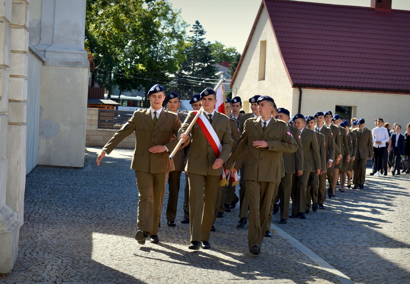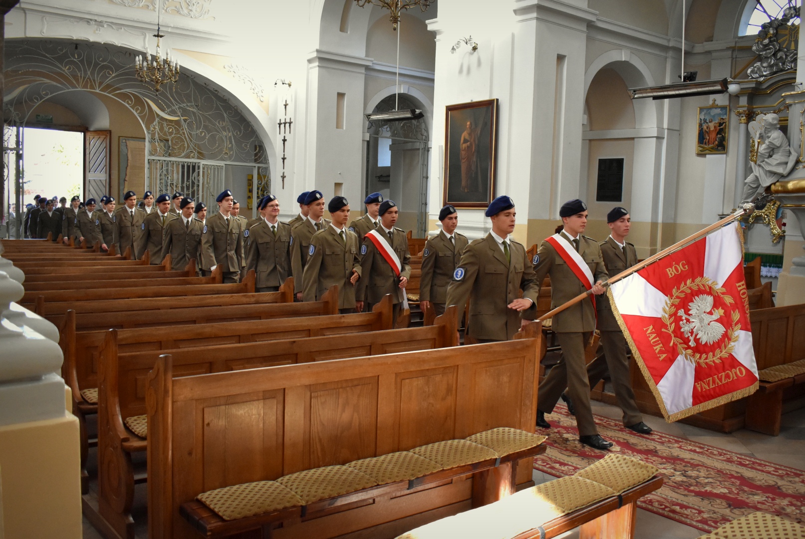 Spotkanie tradycyjnie rozpoczęło się przemarszem pocztu sztandarowego, młodzieży, nauczycieli i wychowawców naszej szkoły do kościoła pod wezwaniem Trójcy Przenajświętszej. Po nabożeństwie wszyscy zebrani udali się do budynku zespołu.