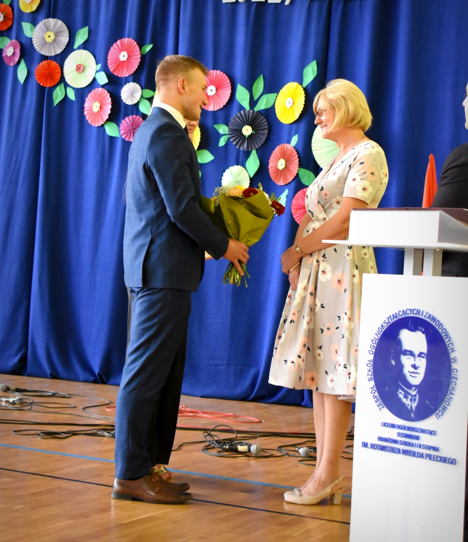 Podczas akademii społeczność szkolna podziękowała także za 41 lat pracy dydaktycznej, w tym 29 w ZSOiZ w Ciechanowcu, Pani Grażynie Boguszewskiej, wieloletniej nauczycielce języka polskiego. Nasza Pani Profesor odeszła na zasłużoną emeryturę. Będzie nam Pani brakować! Proszę o nas pamiętać i odwiedzać.