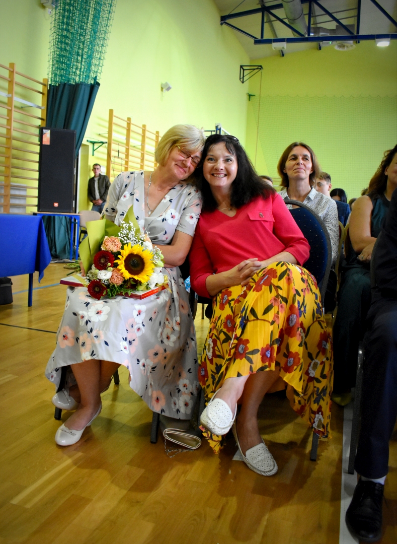 Swoją prace na rzecz szkoły zakończyła również Pani Agata Koc – przewodnicząca Rady Rodziców. Pani Agata pełniła funkcję aż 11 lat. Za trud włożony w rozwój szkoły i owocną współpracę dyrekcji szkoły z Radą Rodziców Pani Agata odebrała podziękowania od dyrektora szkoły Pana Łukasza Godlewskiego, byłego dyrektora szkoły Pana Eugeniusza Święckiego oraz samorządu uczniowskiego.
