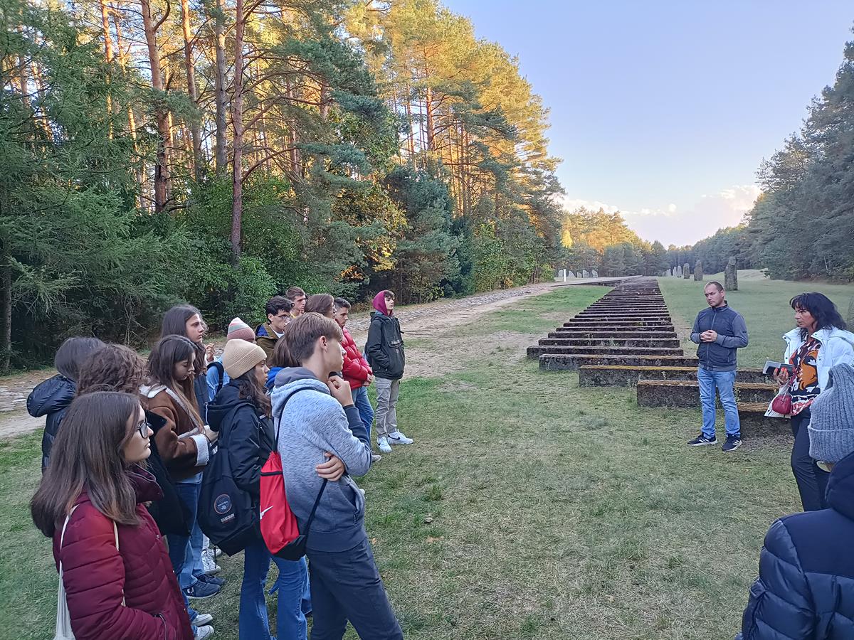 Kolejnym etapem w przedstawieniu włoskim uczniom historii Polski był wyjazd do Treblinki. Poznanie oraz zrozumienie przez nich trudnego dziedzictwa drugiej wojny światowej było jednym z najważniejszych punktów w edukacji historycznej włoskich licealistów. Tereny dawnego karnego obozu pracy oraz obozu zagłady były miejscami w których licealiści poznali tragedię związana z zagładą narodu polskiego, żydowskiego oraz romskiego. Zwiedzanie rozpoczęto od budynku muzeum w którym znajduje się makieta obozów. W pamięci uczniów z Włoch zapadły bez wątpienia nagrania, świadectwa, osób, które przeżyły pobyt w obozie zagłady. Podczas naszego pobytu towarzyszył nam przewodnik, który przybliżył uczniom zasady funkcjonowania oraz życie codzienne w obozie. Zwiedzania obozu zakończono w miejscu straceń, gdzie nauczyciel historii, Pan Dawid Jędrzejak, zwrócił uwagę na trudne dziedzictwo holocaustu w świadomości Polaków.