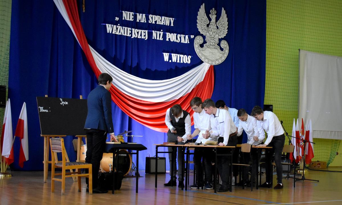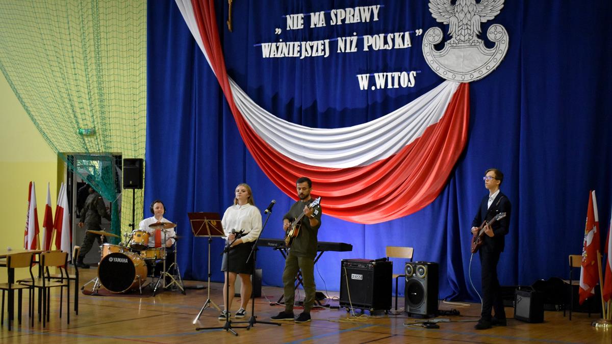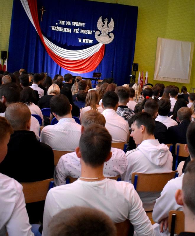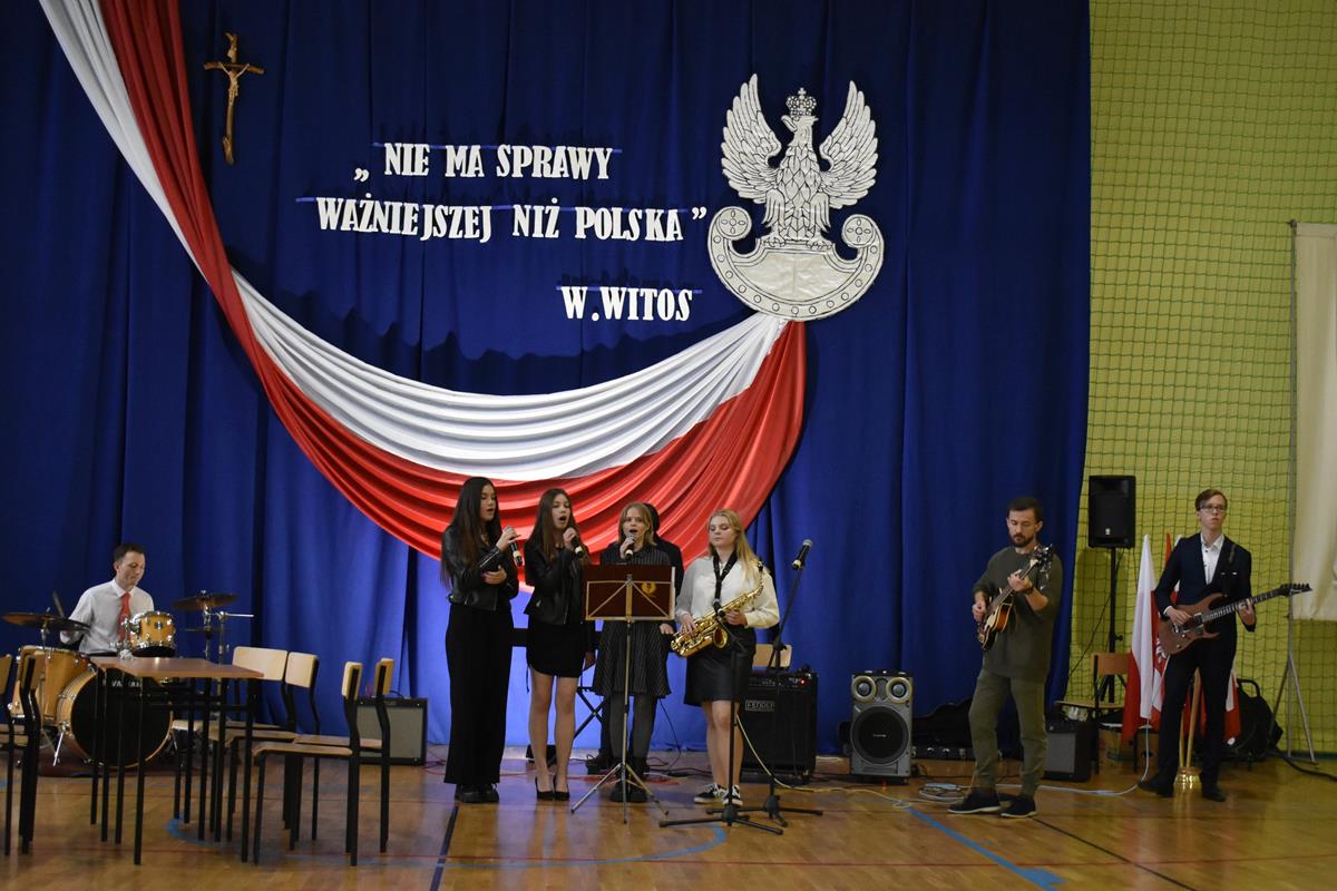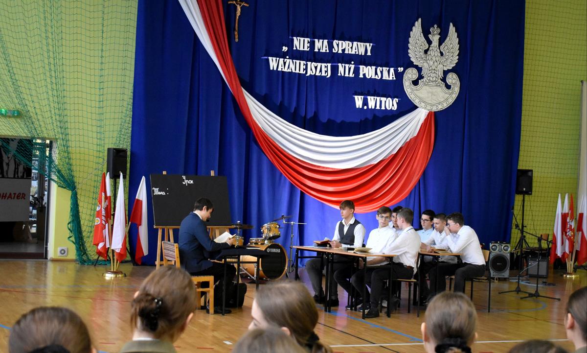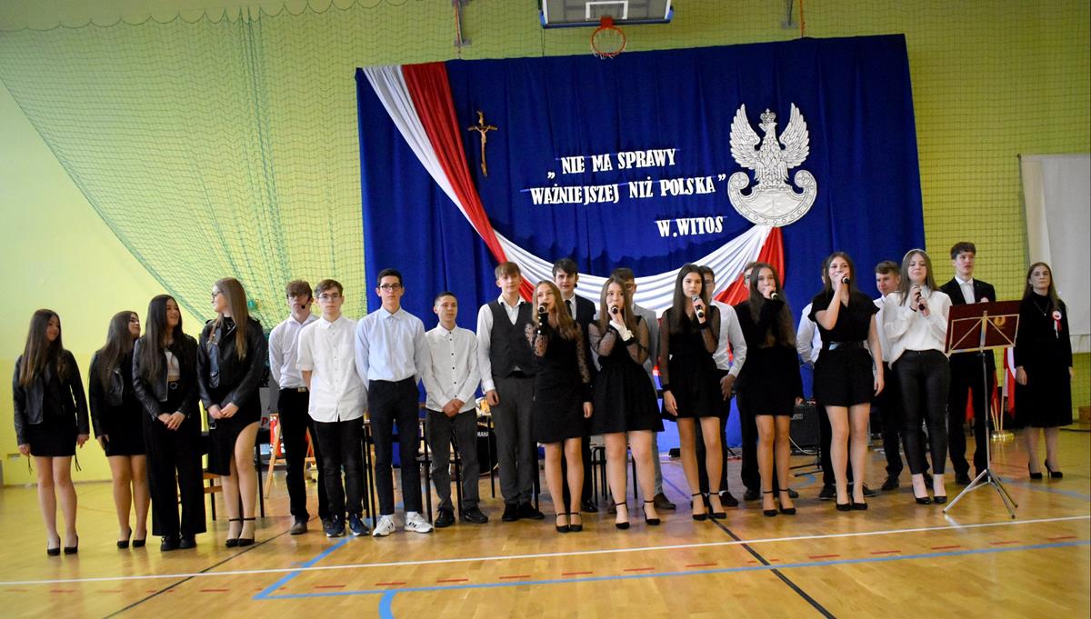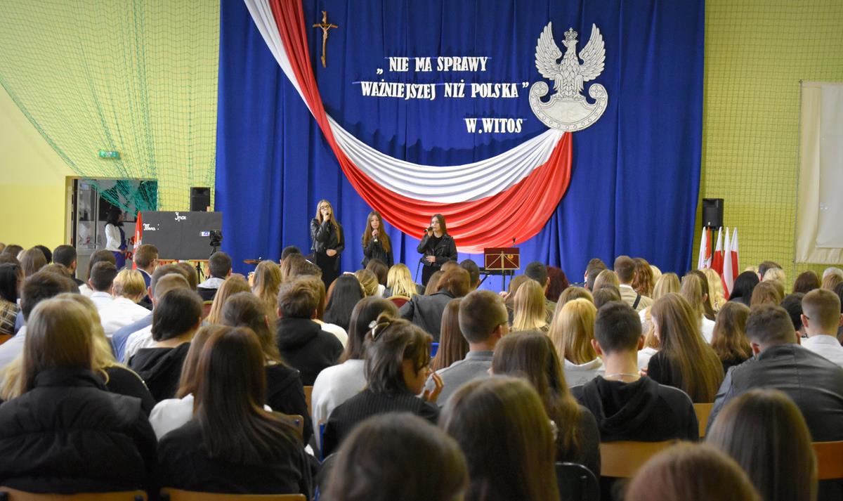 Po 123 latach niewoli Polska odzyskała niepodległość. 10 listopada 2022 r. w naszej szkole odbyła się uroczysta akademia, która stała się okazją do wspólnego odśpiewania hymnu oraz zaznaczenia, jak ważną rolę w kształtowaniu tożsamości narodowej odgrywają wartości szczególnie ważne w życiu Polaków: wolność, solidarność, poszanowanie godności i respektowanie praw człowieka. W tym roku hasłem przewodnim były słowa Wincentego Witosa: „Nie ma sprawy ważniejszej niż Polska”. W scence opartej na fragmentach klasycznego dzieła literatury polskiej pt. „Syzyfowe prace” S. Żeromskiego aktorzy pokazali, że walka o odzyskanie niepodległości przyjmowała różnorodne formy i nie zawsze wiązała się z walką z bronią w ręku. Młodzież mogła także wysłuchać patriotycznych piosenek, tj. „Wolność” M. Grechuty, „Taki kraj” J. Pietrzaka czy „To jest mój dom” My3. Ciekawym uzupełnieniem inscenizacji był teledysk „Białe róże” Małej Armii Janosika oraz występ szkolnego zespołu rockowego, który wykonał dwa utwory o tematyce wolności.