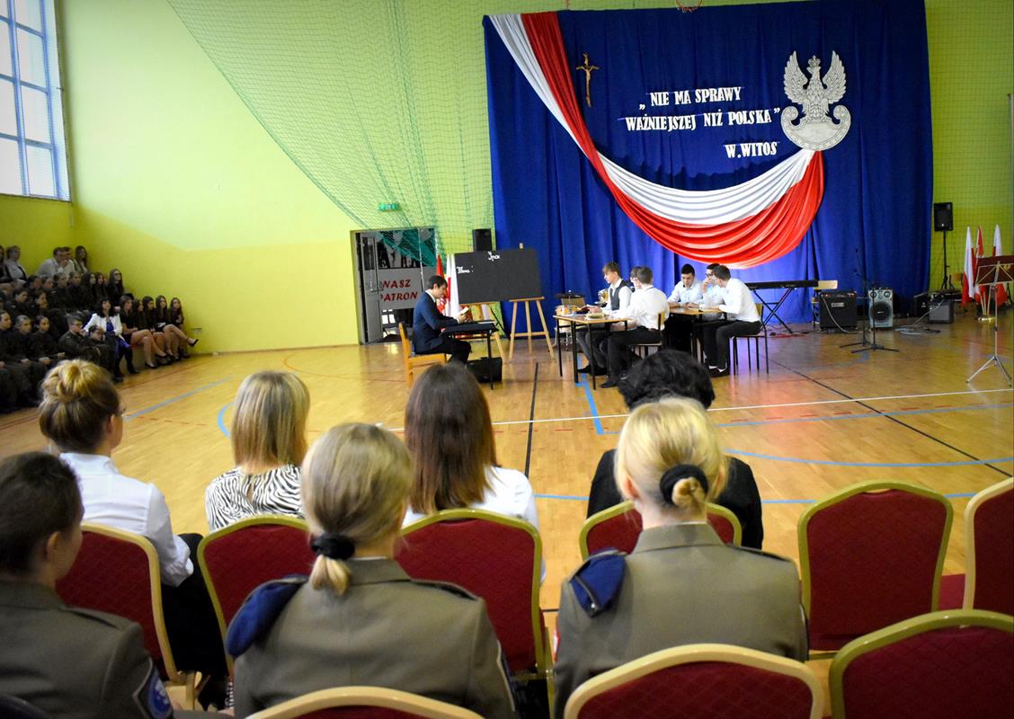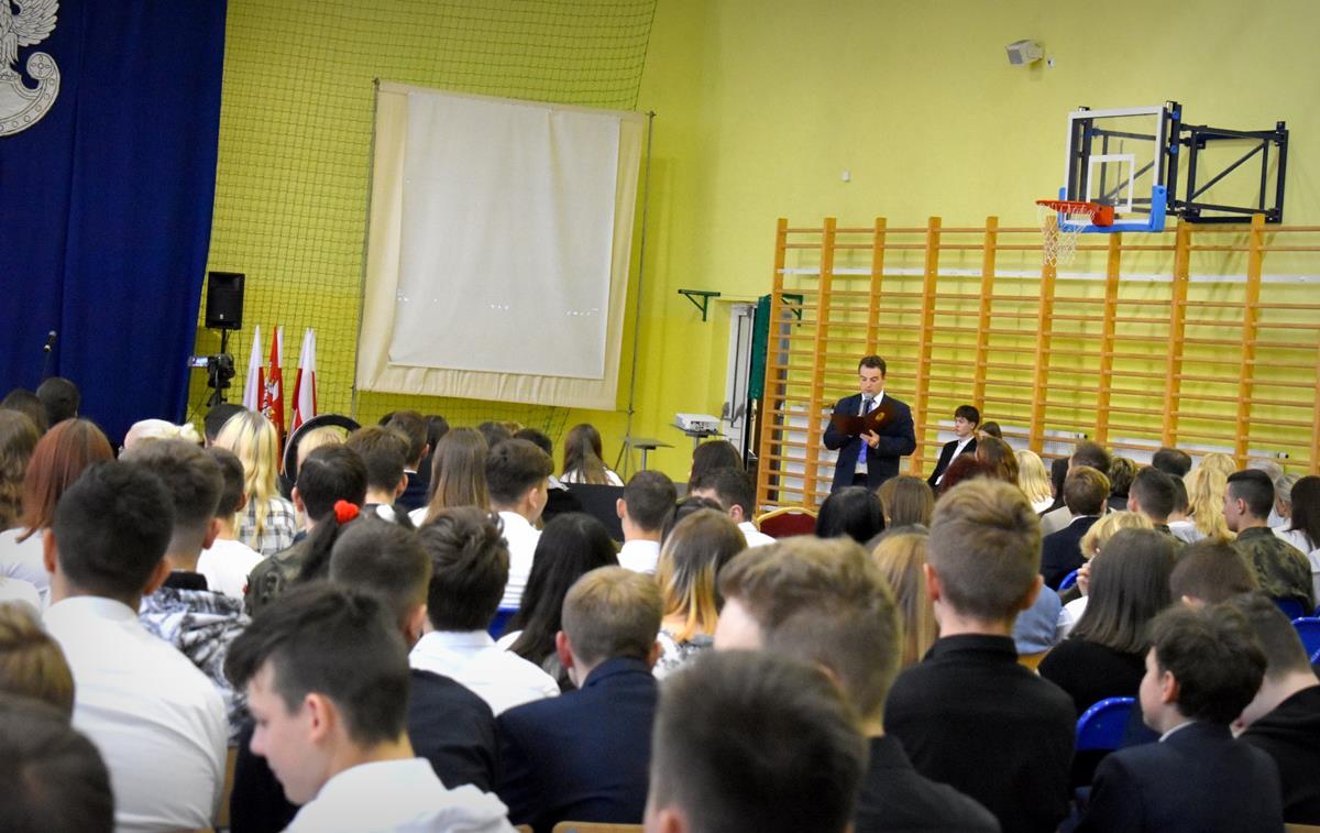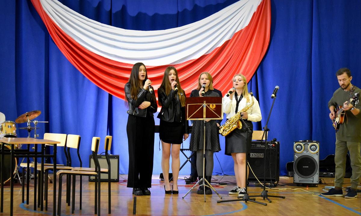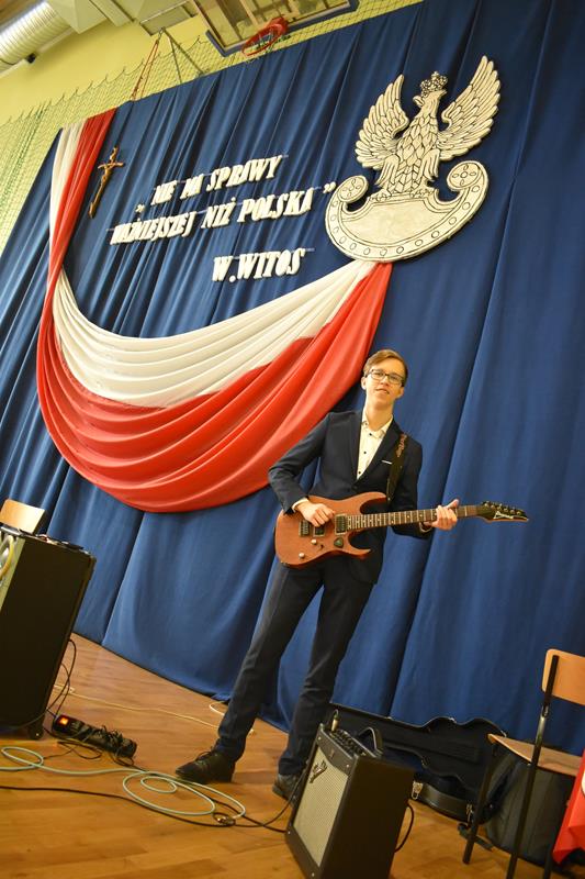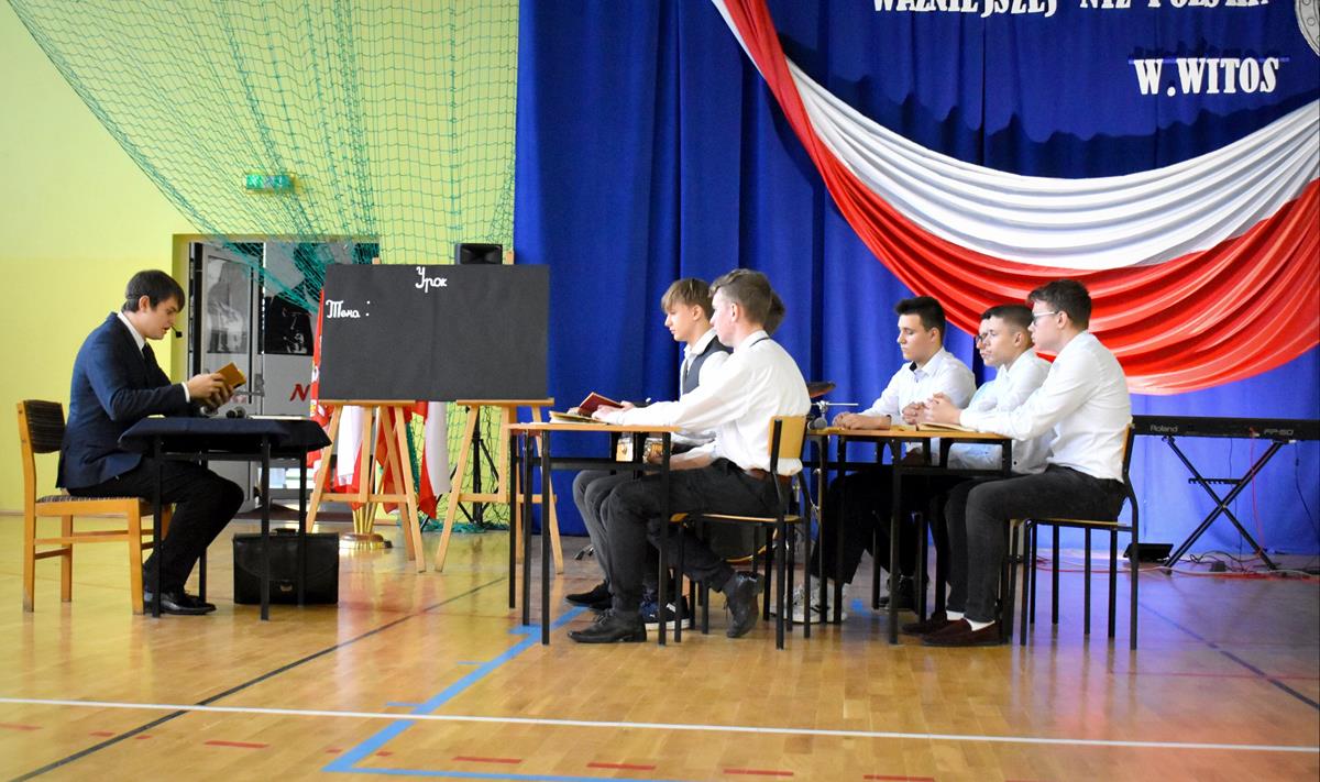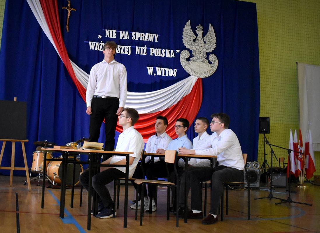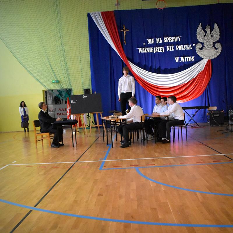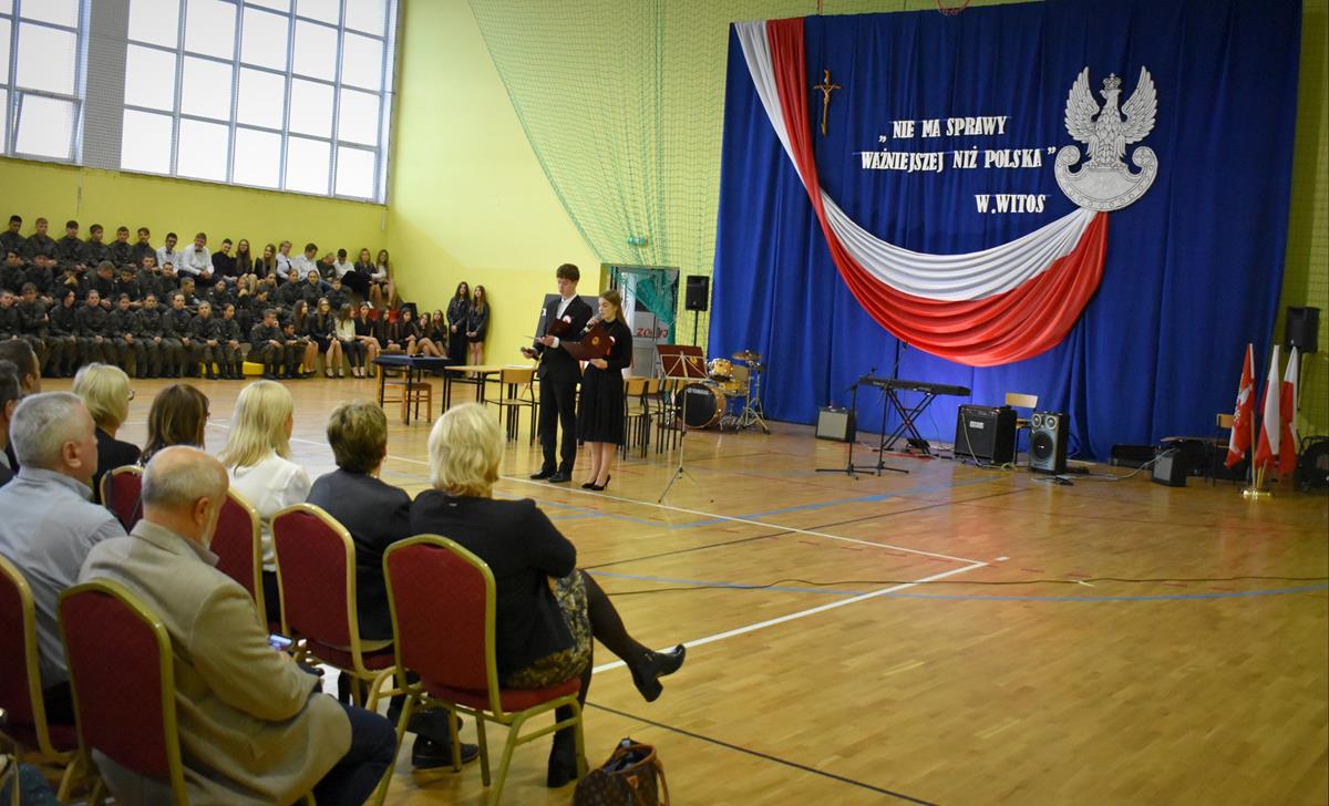 Po 123 latach niewoli Polska odzyskała niepodległość. 10 listopada 2022 r. w naszej szkole odbyła się uroczysta akademia, która stała się okazją do wspólnego odśpiewania hymnu oraz zaznaczenia, jak ważną rolę w kształtowaniu tożsamości narodowej odgrywają wartości szczególnie ważne w życiu Polaków: wolność, solidarność, poszanowanie godności i respektowanie praw człowieka. W tym roku hasłem przewodnim były słowa Wincentego Witosa: „Nie ma sprawy ważniejszej niż Polska”. W scence opartej na fragmentach klasycznego dzieła literatury polskiej pt. „Syzyfowe prace” S. Żeromskiego aktorzy pokazali, że walka o odzyskanie niepodległości przyjmowała różnorodne formy i nie zawsze wiązała się z walką z bronią w ręku. Młodzież mogła także wysłuchać patriotycznych piosenek, tj. „Wolność” M. Grechuty, „Taki kraj” J. Pietrzaka czy „To jest mój dom” My3. Ciekawym uzupełnieniem inscenizacji był teledysk „Białe róże” Małej Armii Janosika oraz występ szkolnego zespołu rockowego, który wykonał dwa utwory o tematyce wolności.