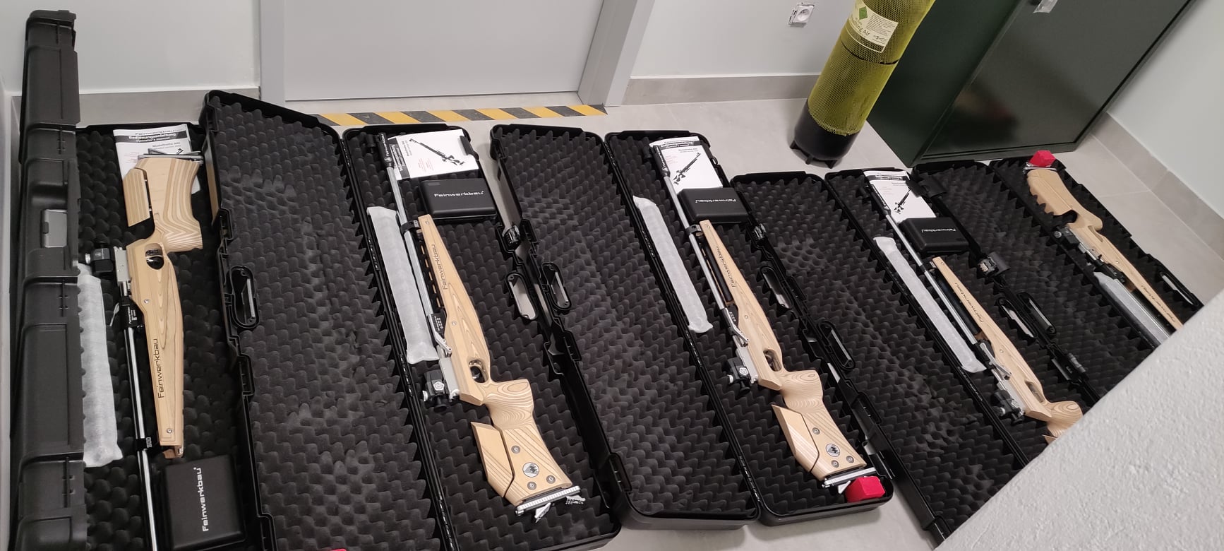 - • karabiny pneumatyczne x 5 sztuk – kompletne zestawy każdy z jednym zbiornikiem ciśnieniowym,