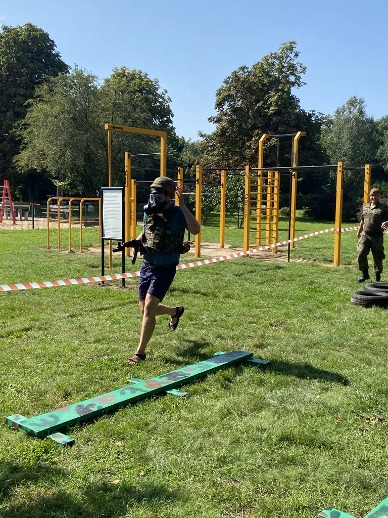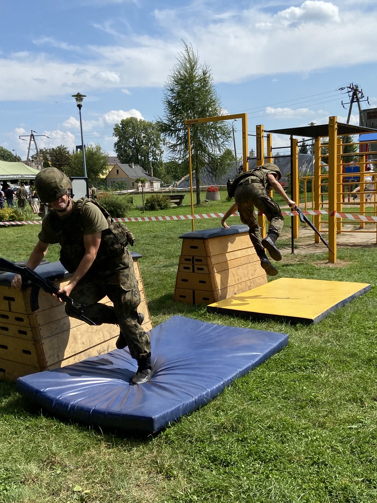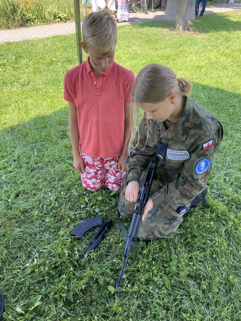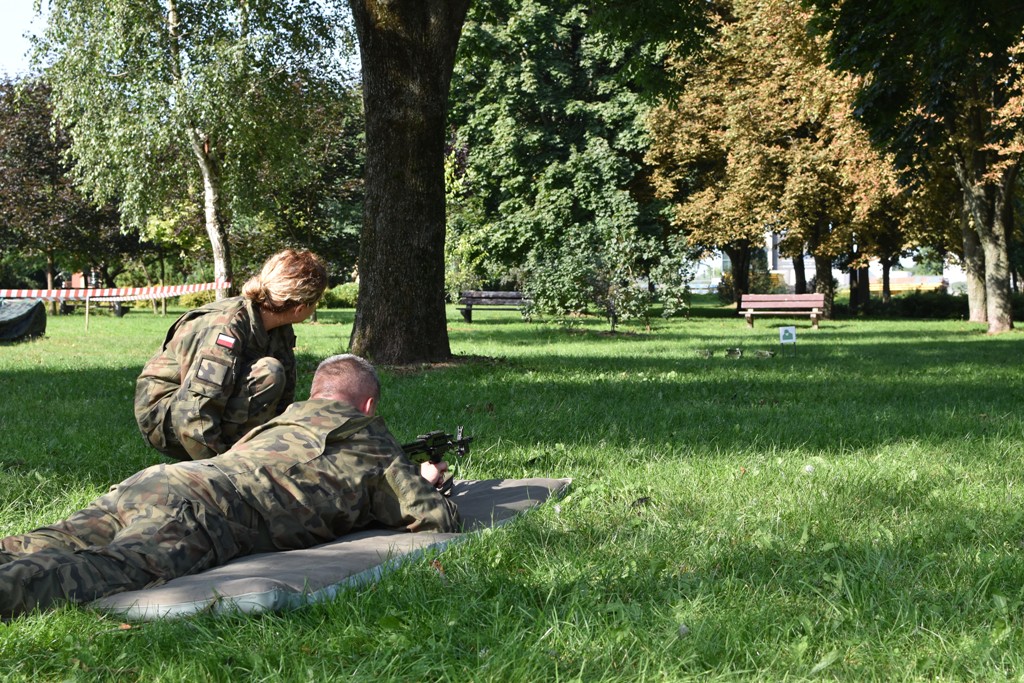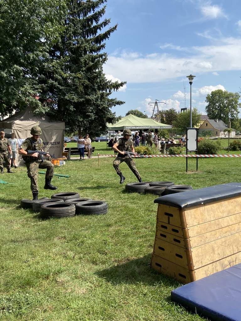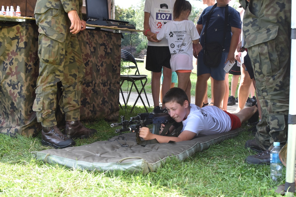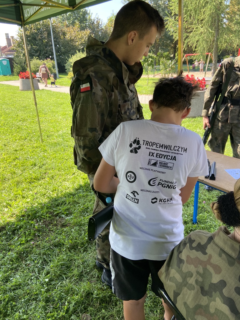 Biegowi towarzyszył piknik militarny, zorganizowany przy udziale naszej szkoły i uczniów klas wojskowych. Nasi uczniowie Certyfikowanych Wojskowych Klas Mundurowych pomagali w zabezpieczeniu biegu, zorganizowali dla uczestników pikniku strzelanie na odległość z karabinków szkoleniowych oraz instruktarz składania broni krótkiej i długiej.
