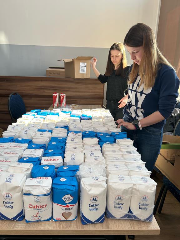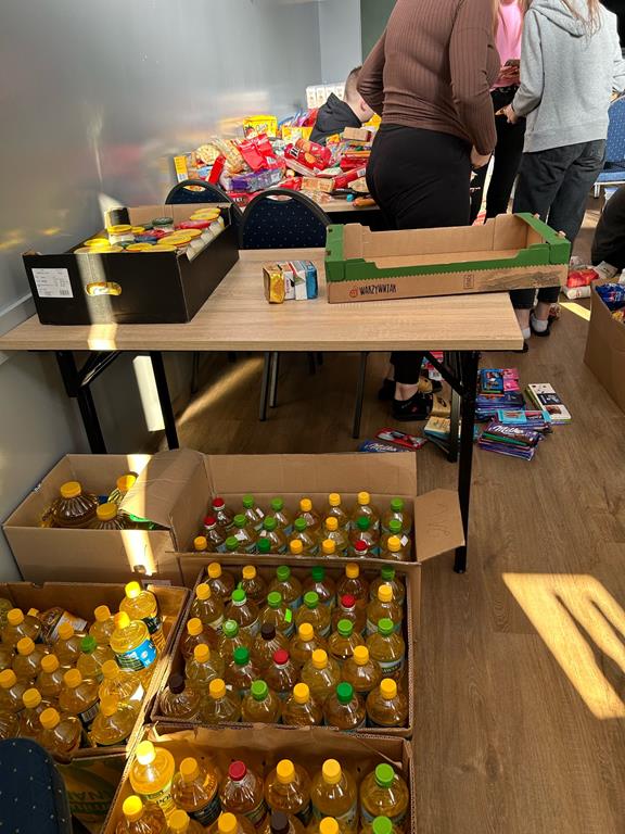 Zbiórka żywność w sklepie Segregowanie żywności i pakowanie paczek |